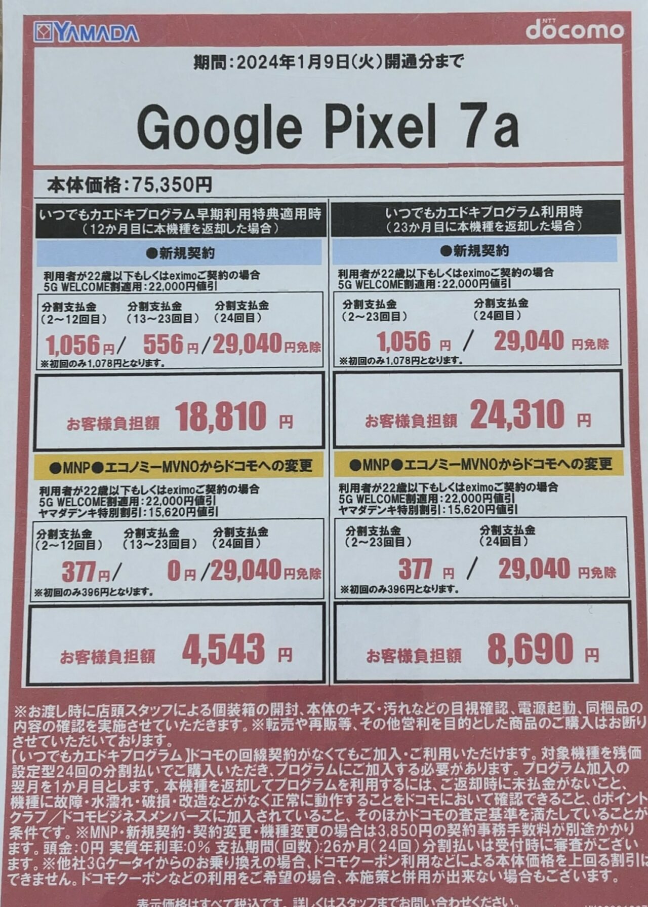 auオンラインでも同様の案内で、店頭だとさらに割引がある訳ではないが、店舗のポイントなどがあればさらに安く買えるだろう。