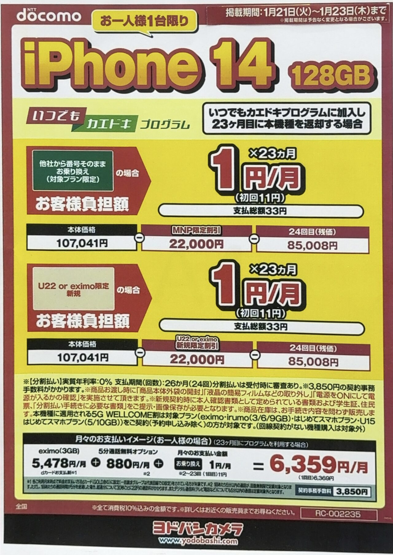 12月に続き、1月もヨドバシカメラにおいて、auのGoogle Pixel 8aが特価で案内されている事を確認した。
