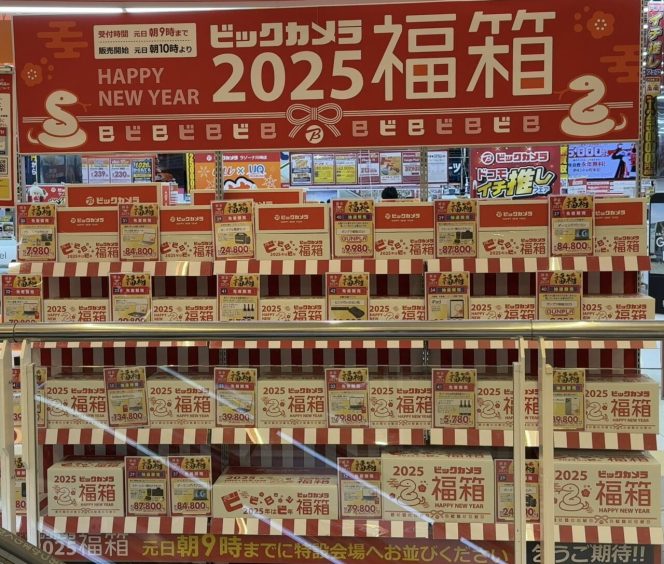 ビックカメラ店頭において、1/1(水)9時受付、10時販売より福箱を販売する。