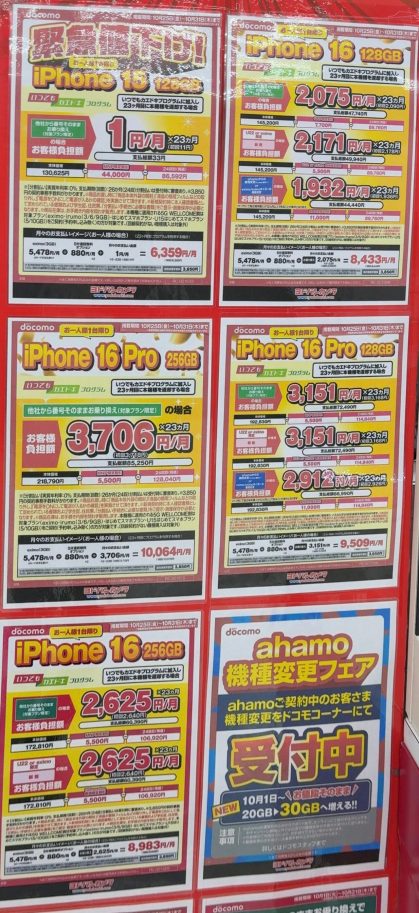 9月に続き、10月もヨドバシカメラにおいて、ドコモの対象のiPhone、Androidが特価で案内されていたので紹介しておきたい。