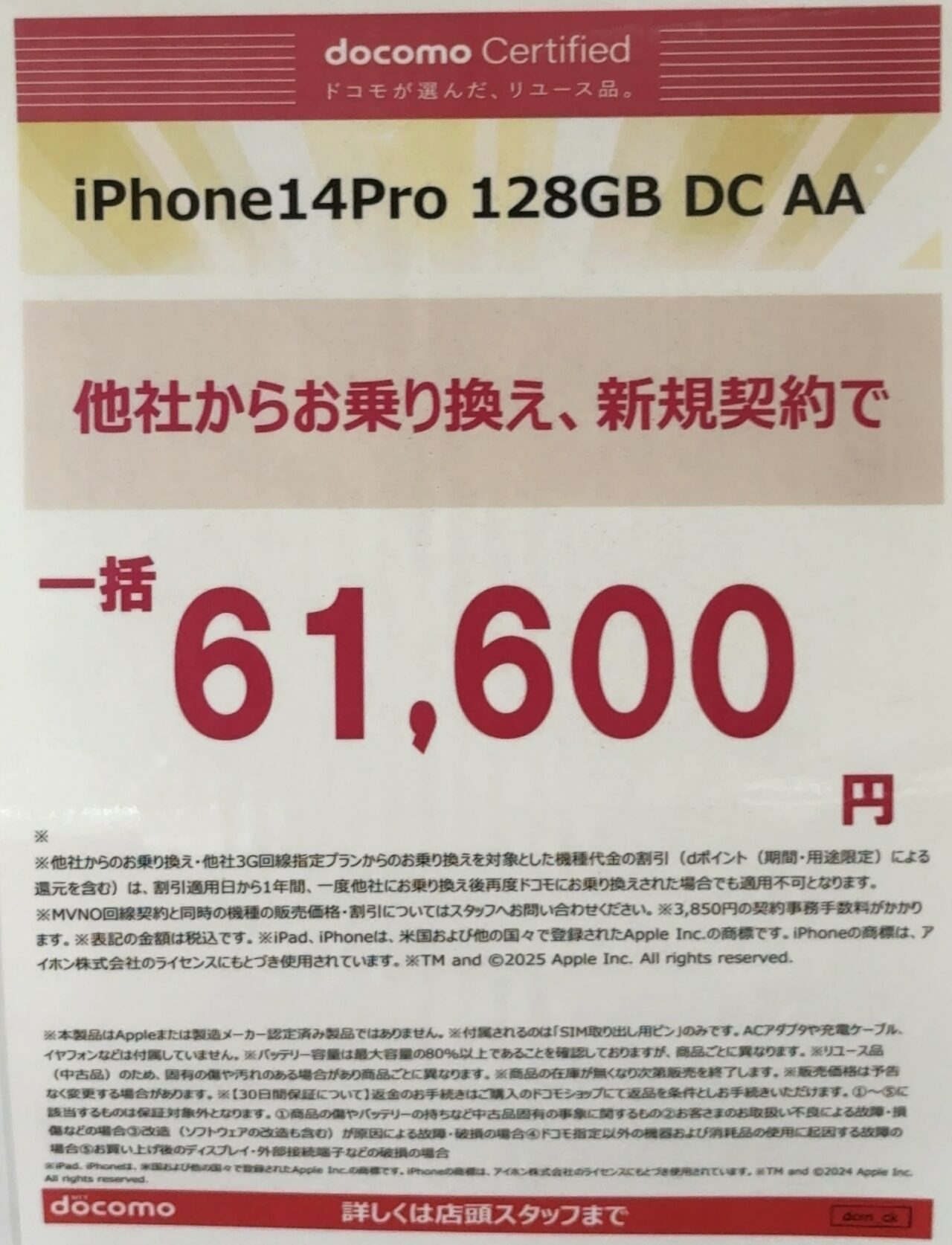 iPhone 16や16eや15の128GBは、MNPなら個別で大幅割引の案内がある場合があると思われるので、そちらを確認して頂きたい。