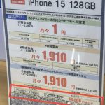 案内ではiPhone 15の128GBが大々的に案内されているが、下に小さくiPhone 14もある。
