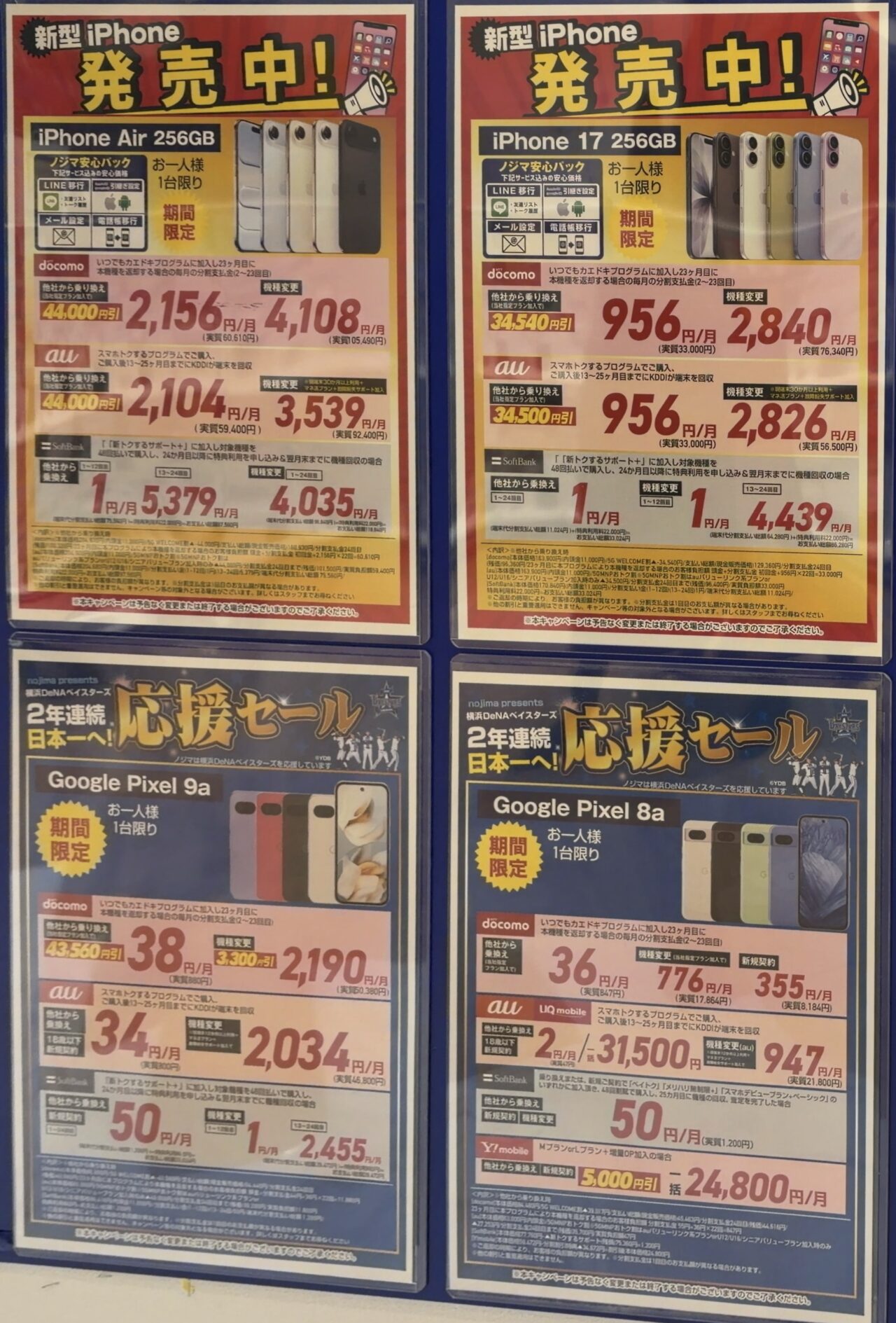iPhone 17 Pro Max(256GB) | 240,900円 | 11,000円 | 229,900円 30,000ポイント進呈 |