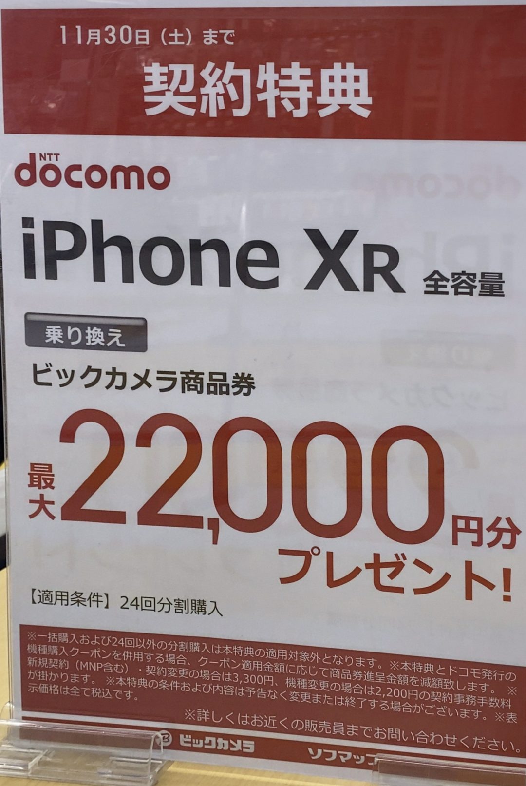 通常のMNPの場合は11,000円還元となり、ビックカメラ商品券プレゼントとなる。