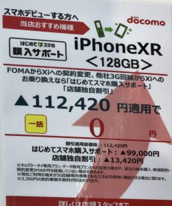 ・3月もドコモショップでiPhone XRの128GBがFOMAからの機種変更と3GからのMNPで一括18,920円