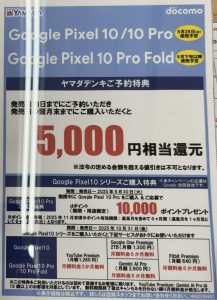 ・【発売日前日まで】ヤマダデンキでauのPixel 10(Pr/XL/Fold含む)予約で5,000円還元〜機種変更など全契約で対象