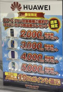 ・【2月土日祝日限定】秋葉原ヨドバシでファーウェイスマホ4機種がIIJmioとセットで13,000円割引