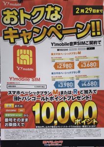 1月に続き 、2月ヨドバシカメラにおいてMVNO各社がキャンペーンを行っており、端末セットなどが割引されているので紹介したい。