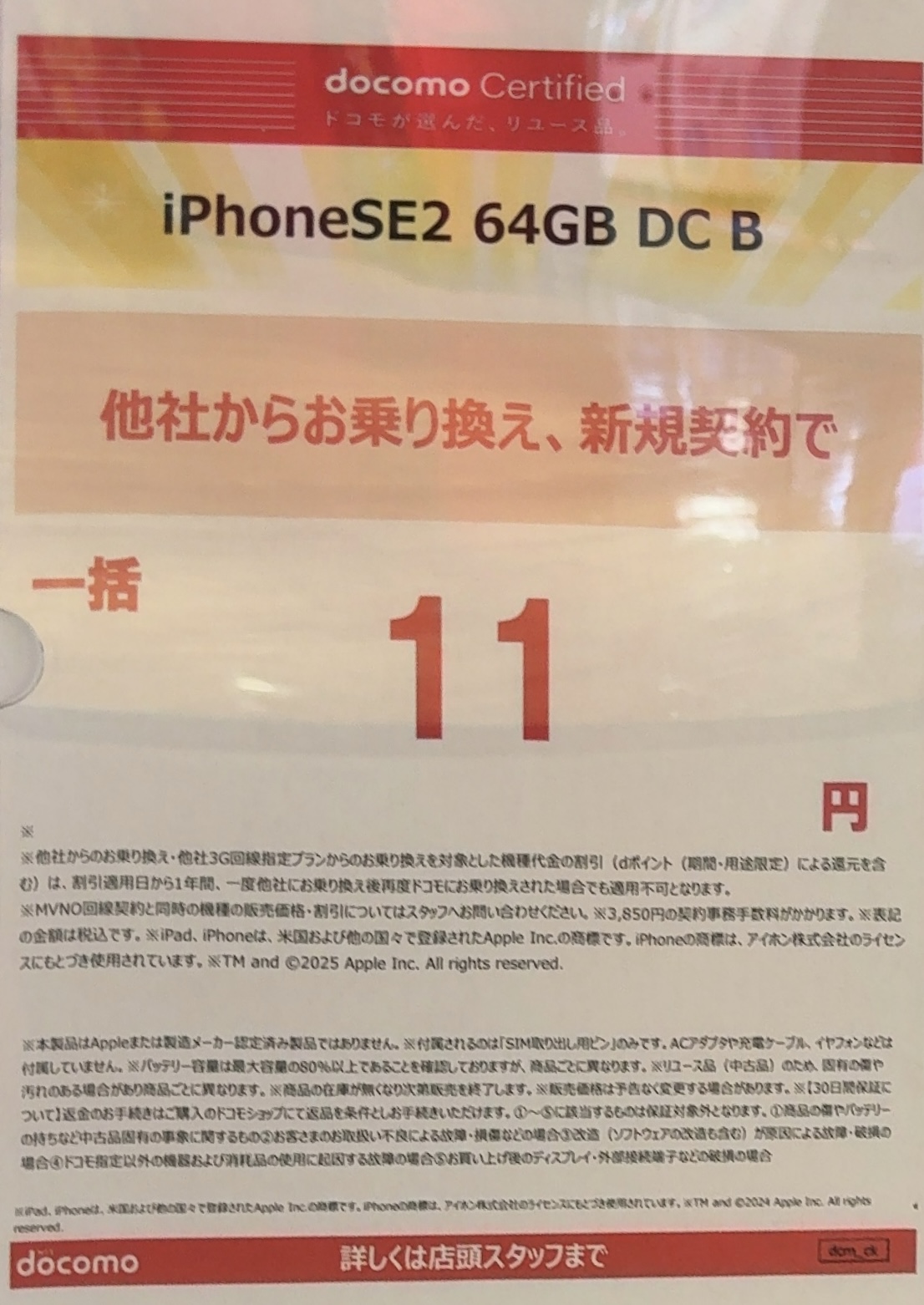 ワイモバイルでも良ければMNPまたは2回線目新規で一括24,800円と、ソフトバンクより安く買える。