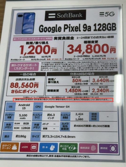 【8/20(水)〜】ソフトバンク/ワイモバイルの携帯電話/スマートフォンの店頭事務手数料が4,950円に値上げを確認