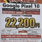 2025-08-24 / 最終更新日時 : 2025-09-01 SMB Android8/28(木)発売のauのPixel 10の128GBがエディオンで早くもMNP(UQから含)で4.4万円引きの8.4万円、2年後返却で実質2.2万円で案内 エディオンにおいて、8/28(木)に販売予定のauのGoogle Pixel 10が早くも特価で案内されている事を確認した。 期間は9/30(火)までとなっている。 通常機種代金は128,900円で内訳は以下。容量は12 […]