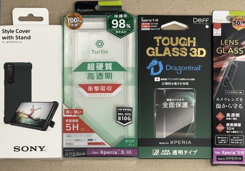 ケースはメーカーによってはカメラ部分より高くするためか、背面の周辺が高くなっている場合もあり、それが持ちにくさに影響するのがXperia 1 Ⅲの時に分かったので、それも嫌だった。