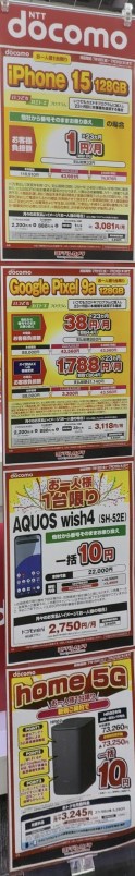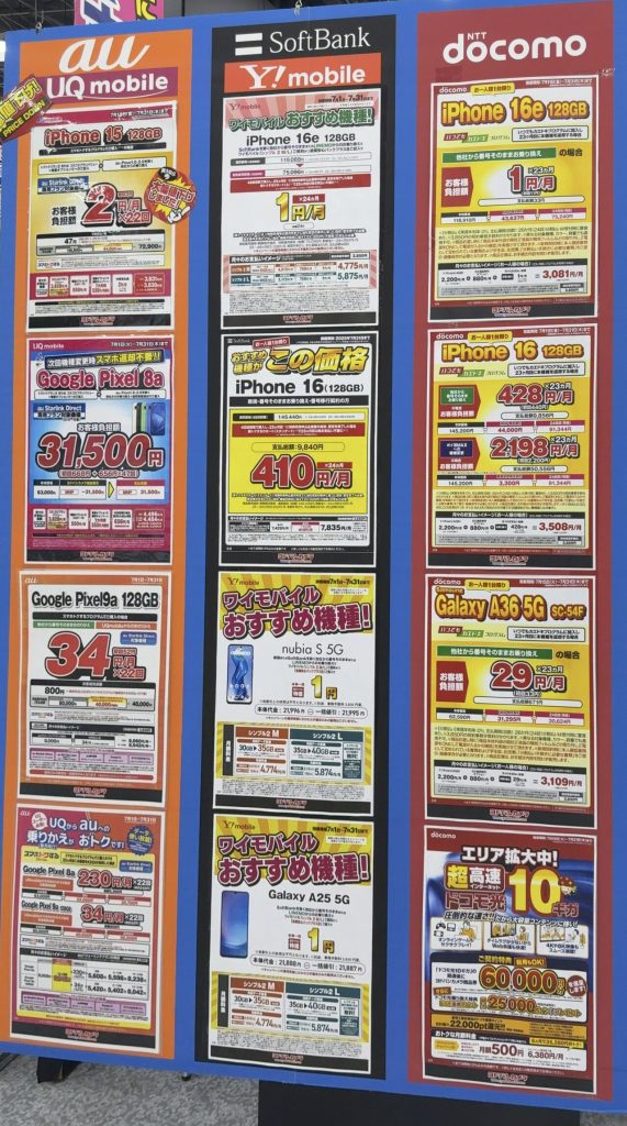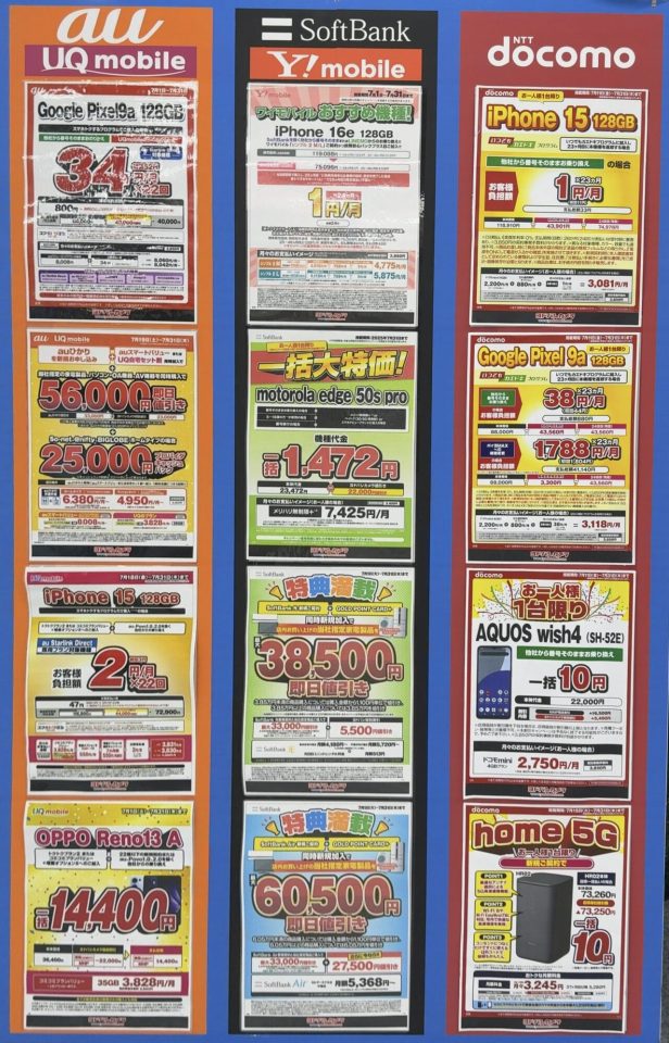 【2025/7版その2】川崎ヨドバシで確認できたドコモ/au/ソフトバンク/ワイモバイル/UQモバイルのiPhone/Androidの特価案内